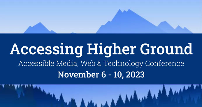 The Office of Information Technology – Enterprise Information Systems – is hosting a live stream of this year's Accessing Higher Ground Accessible Media, Web and Technology Conference, to be held November 6 - 10, 2023. The conference will be streamed at the Biltmore in Conference Room 302 Monday, Tuesday, Thursday, Friday, and Conference Room 317 on Wednesday.